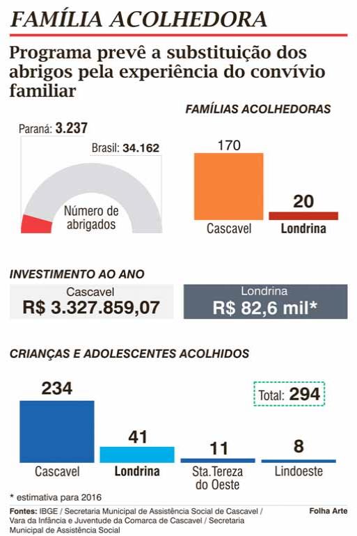 Essa mobilização é liderada pela Vara da Infância e Juventude da comarca de Cascavel (Oeste), onde há dez anos funciona o Programa Família Acolhedora, desenvolvido pelo governo federal. O município tornou-se referência não só para o restante do País, mas para toda a América Latina. O programa conseguiu acabar com os abrigos. Das quatro instituições que funcionavam na região, duas foram fechadas, uma foi transformada em escola e outra em casa lar, que serve apenas como porta de entrada para o acolhimento familiar. Na área de abrangência daquela comarca funcionam hoje três casas lares e duas casas de passagem para adolescentes.
