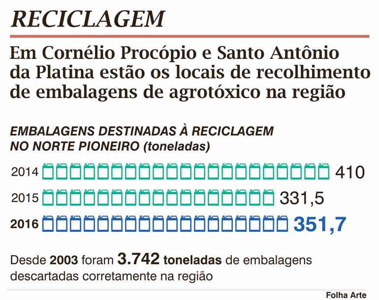 O encaminhamento da associação às recicladoras é feito pelo Instituto Nacional de Processamento de Embalagens Vazias (Inpev), uma Ong criada pelos fabricantes de defensivos agrícolas para dar a correta destinação às embalagens de agrotóxico. Conforme o Inpev, o Paraná é o estado que mais contribui para que o Brasil seja referência mundial em recolhimento de embalagens vazias de agrotóxicos. O índice nacional é de 94% de reaproveitamento, na França é de 77%, no Canadá 73% e, nos Estados Unidos, 33%.